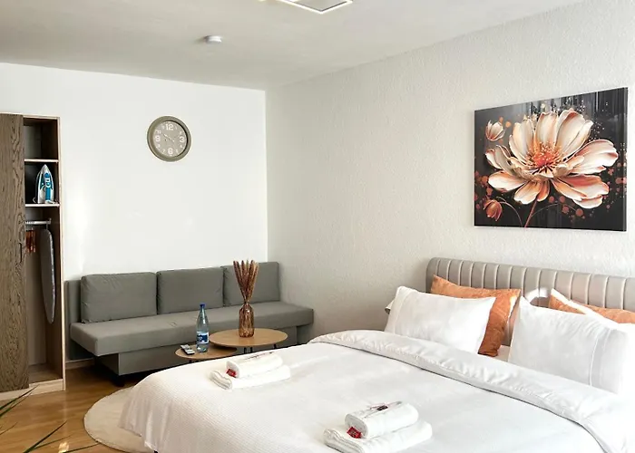 Apartmán Apartment Monheim Am Rhein nabízí kompletní kuchyni i pokoje s psacím stolem, přístrojem na přípravu kávy a čaje, vysokorychlostním internetem. Kleinbahn im Rheinpark je vzdáleno asi 3 km, a Hitdorfer See je vzdáleno 3,1 km od ubytování.